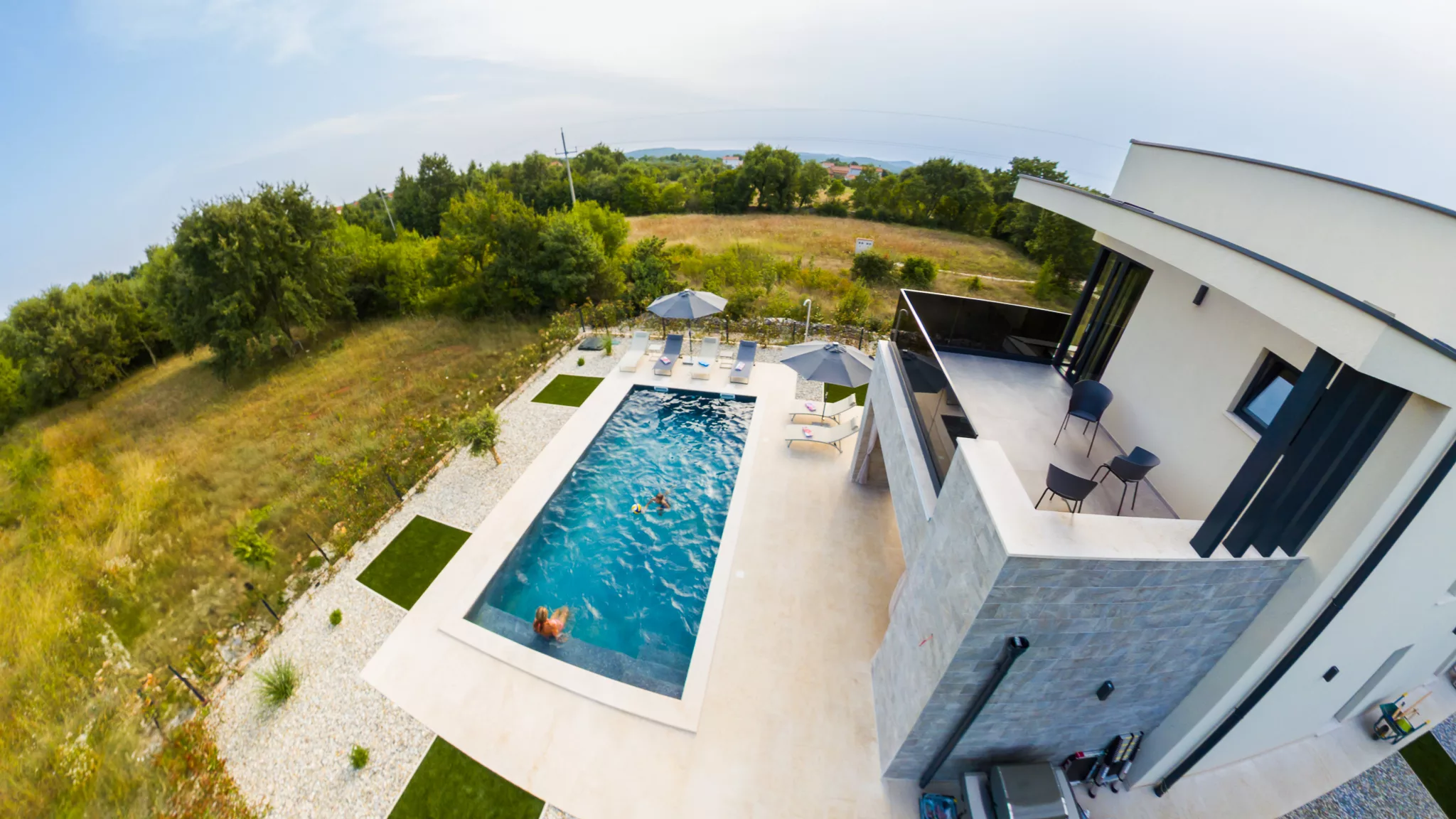 Die Villa liegt in einer idyllischen dörflichen Umgebung ohne direkte Nachbarn – ideal für einen erholsamen Rückzugsort. Genießen Sie die klare Luft, das Zwitschern der Vögel und den Blick auf grüne Felder mit Olivenbäumen, sanfte Berggipfel und bei klarem Wetter sogar einen Hauch von Meerblick. Trotz der ruhigen Lage sind Geschäfte, Restaurants, Bars und Sehenswürdigkeiten nur 1,5 km entfernt. Die malerischen Städte Rovinj, Poreč, Pula und Rabac sind ebenfalls leicht zu erreichen und bieten eine Vielzahl von Ausflugszielen und Aktivitäten.