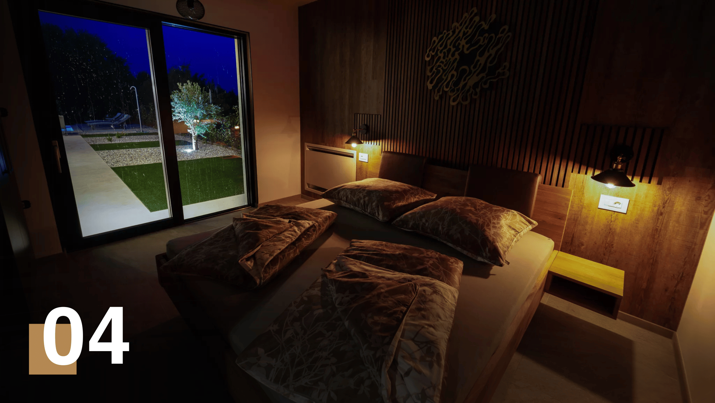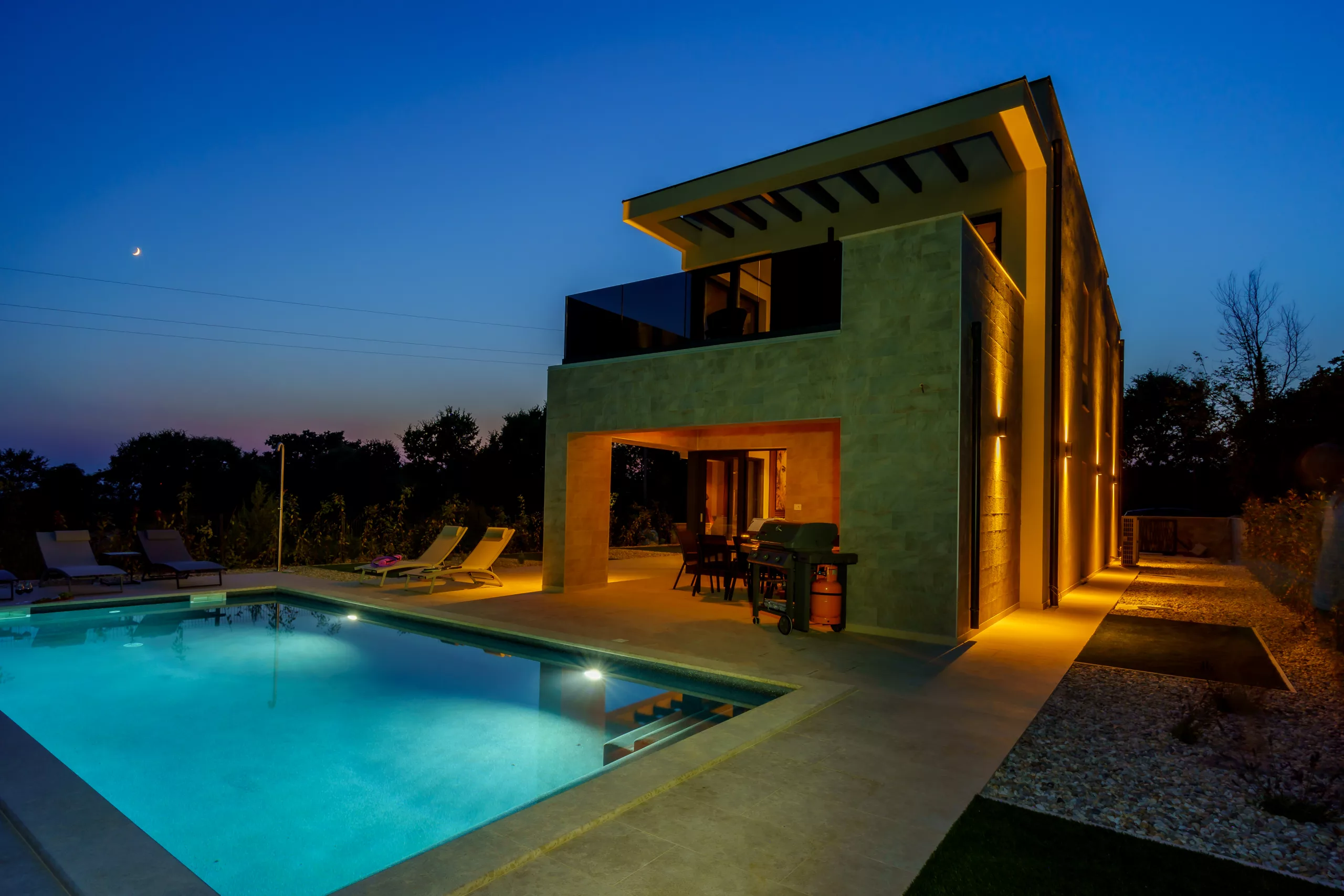 Die Villa bietet Platz für bis zu 8 Personen in vier eleganten Schlafzimmern. Drei Schlafzimmer sind mit luxuriösen Kingsize-Betten ausgestattet, während das vierte Schlafzimmer ein bequemes ausklappbares Sofa bietet.