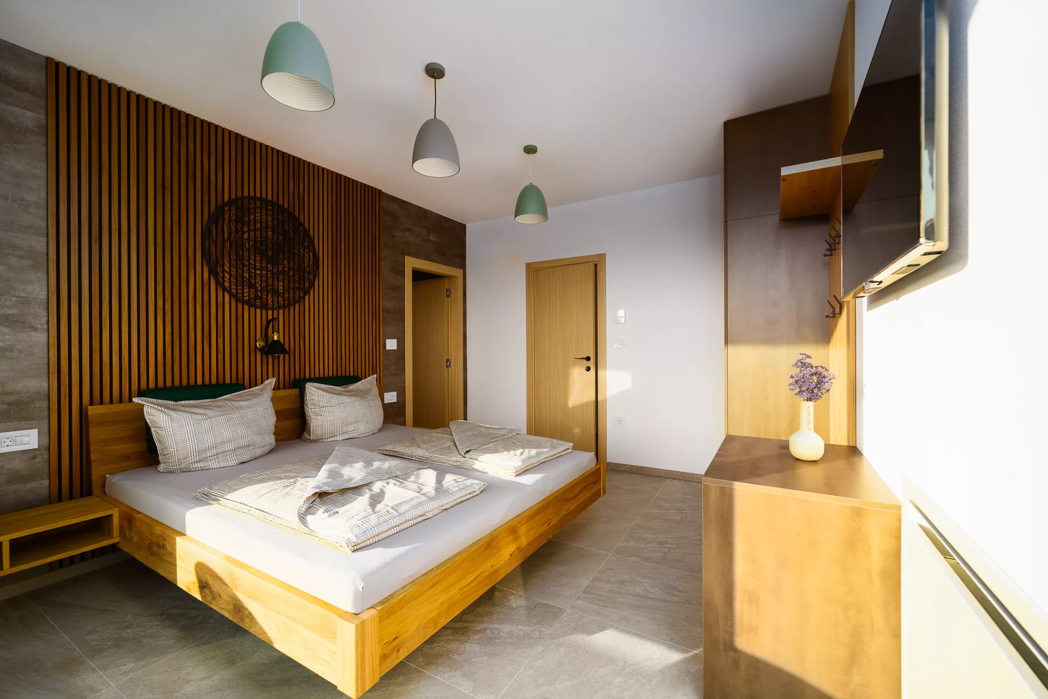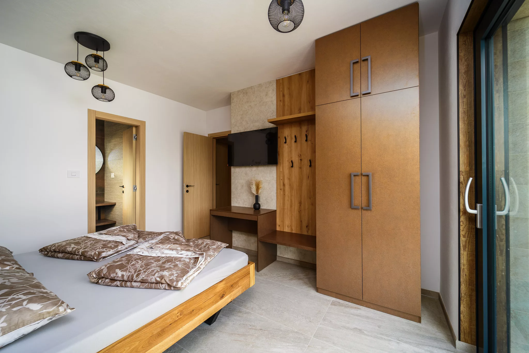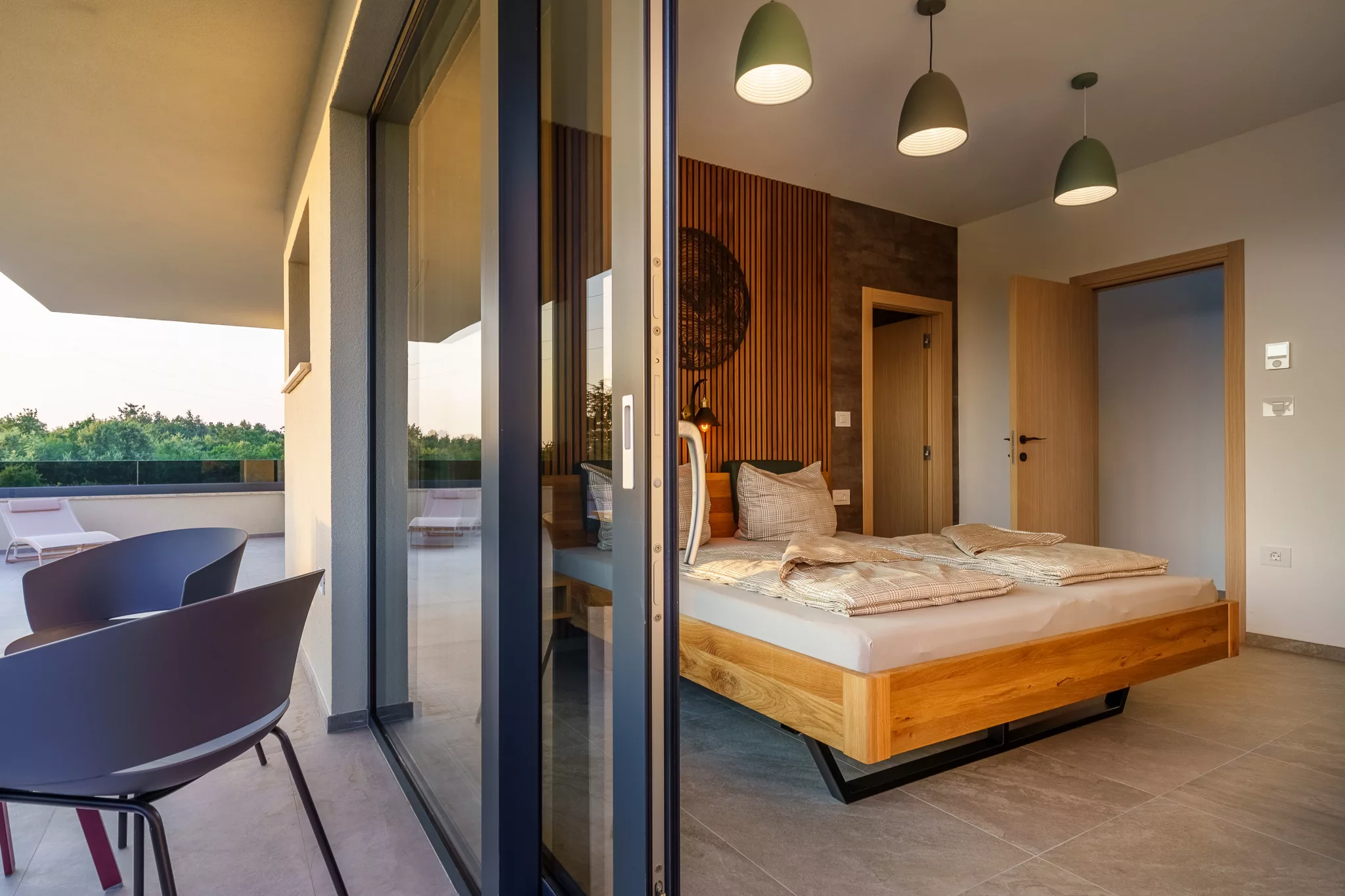 Alle Zimmer verfügen über Flachbildfernseher, großzügige Schränke und Zugang zu einer eigenen Terrasse, die einen herrlichen Ausblick auf die Natur ermöglicht.