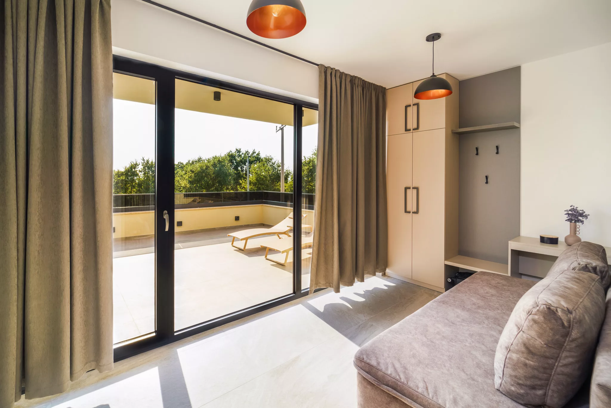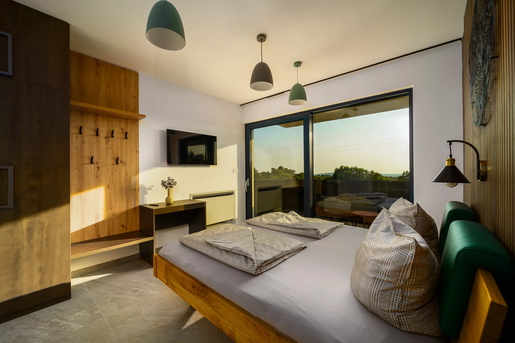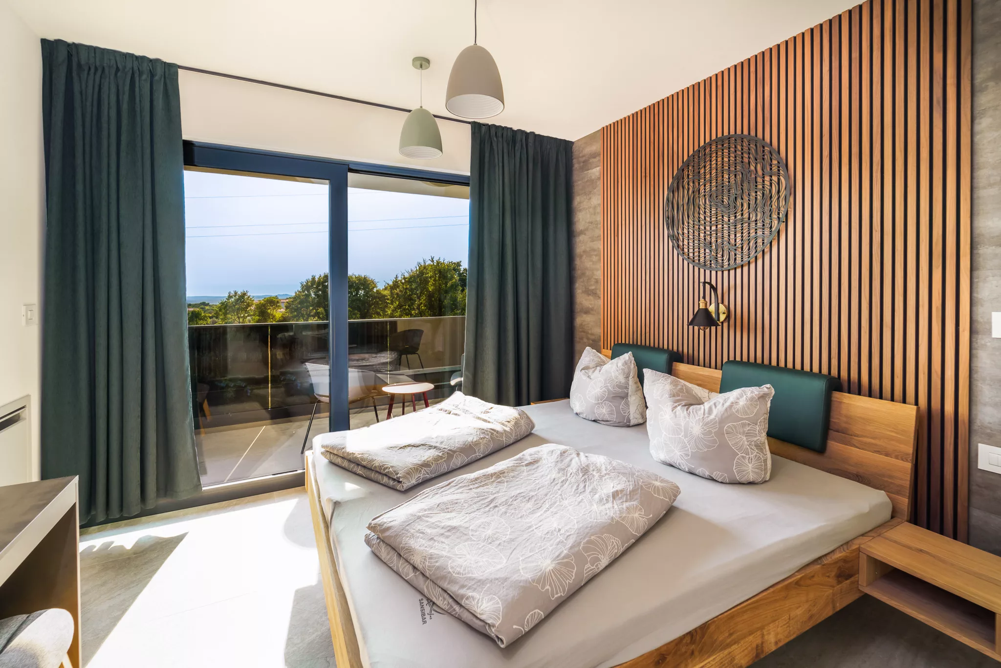 Alle Zimmer verfügen über Flachbildfernseher, großzügige Schränke und Zugang zu einer eigenen Terrasse, die einen herrlichen Ausblick auf die Natur ermöglicht.