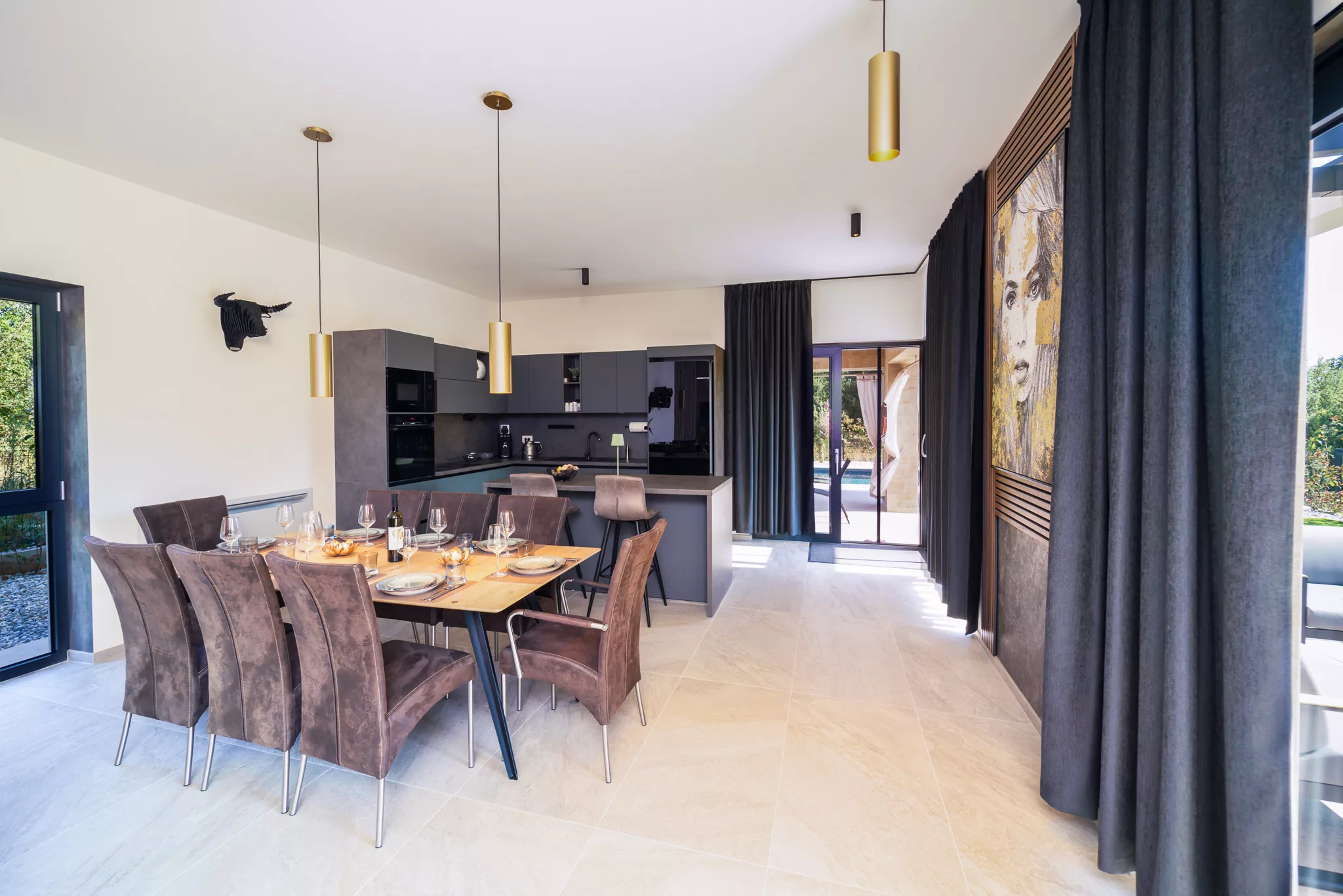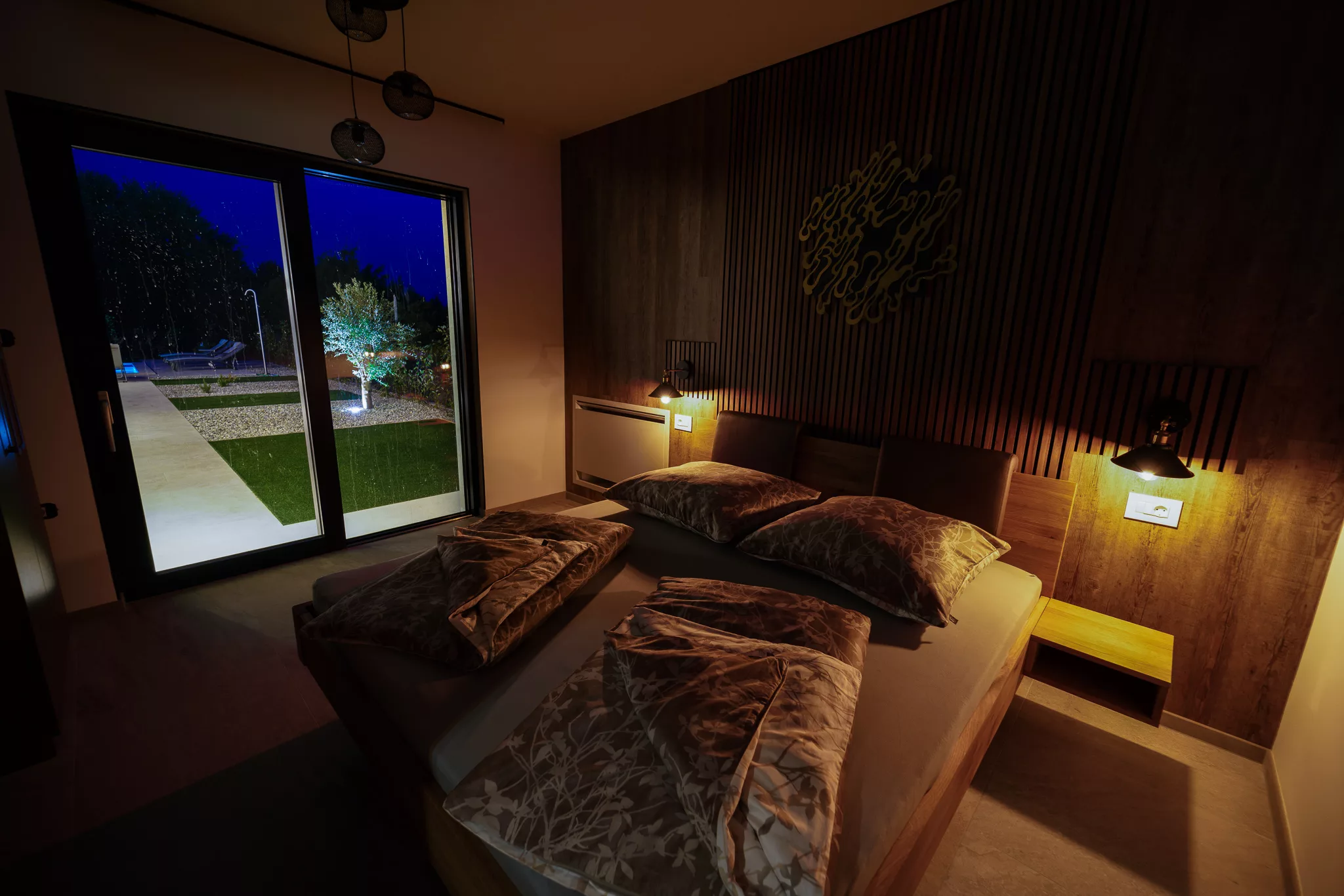 Die Villa bietet Platz für bis zu 8 Personen in vier eleganten Schlafzimmern. Drei Schlafzimmer sind mit luxuriösen Kingsize-Betten ausgestattet, während das vierte Schlafzimmer ein bequemes ausklappbares Sofa bietet.