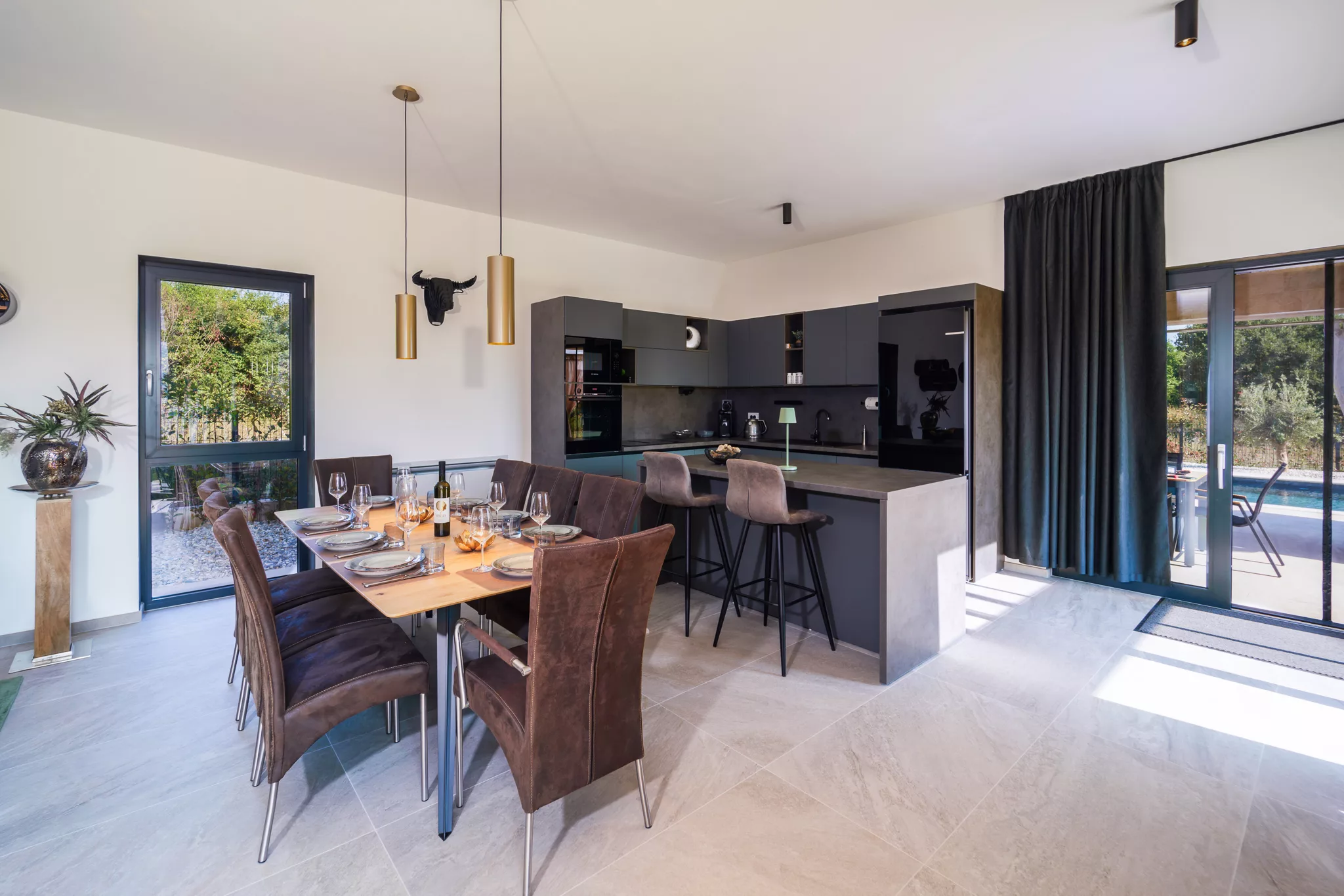 Die Innenräume sind mit hochwertigen Möbeln ausgestattet, die Eleganz und Gemütlichkeit vereinen.